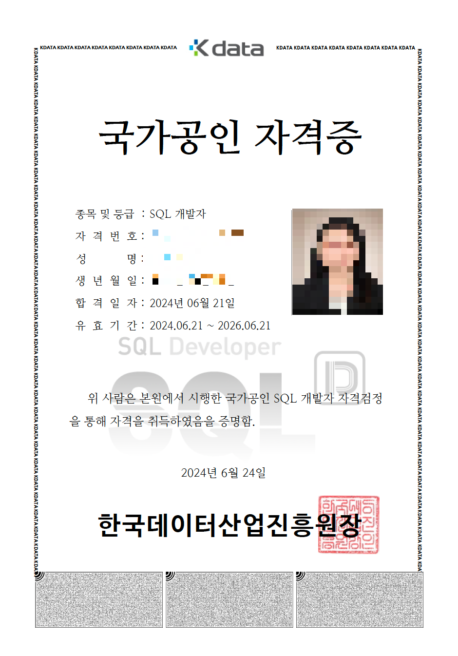 SQLD 시험에 무사히 합격하여 자격증 취득을 했다!!