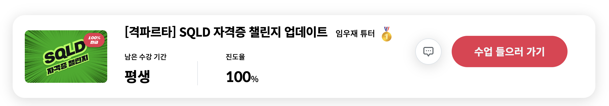 첫 2주 동안은 스파르타코딩의 "[격파르타] SQLD 자격증 챌린지" 수업을 들으며,